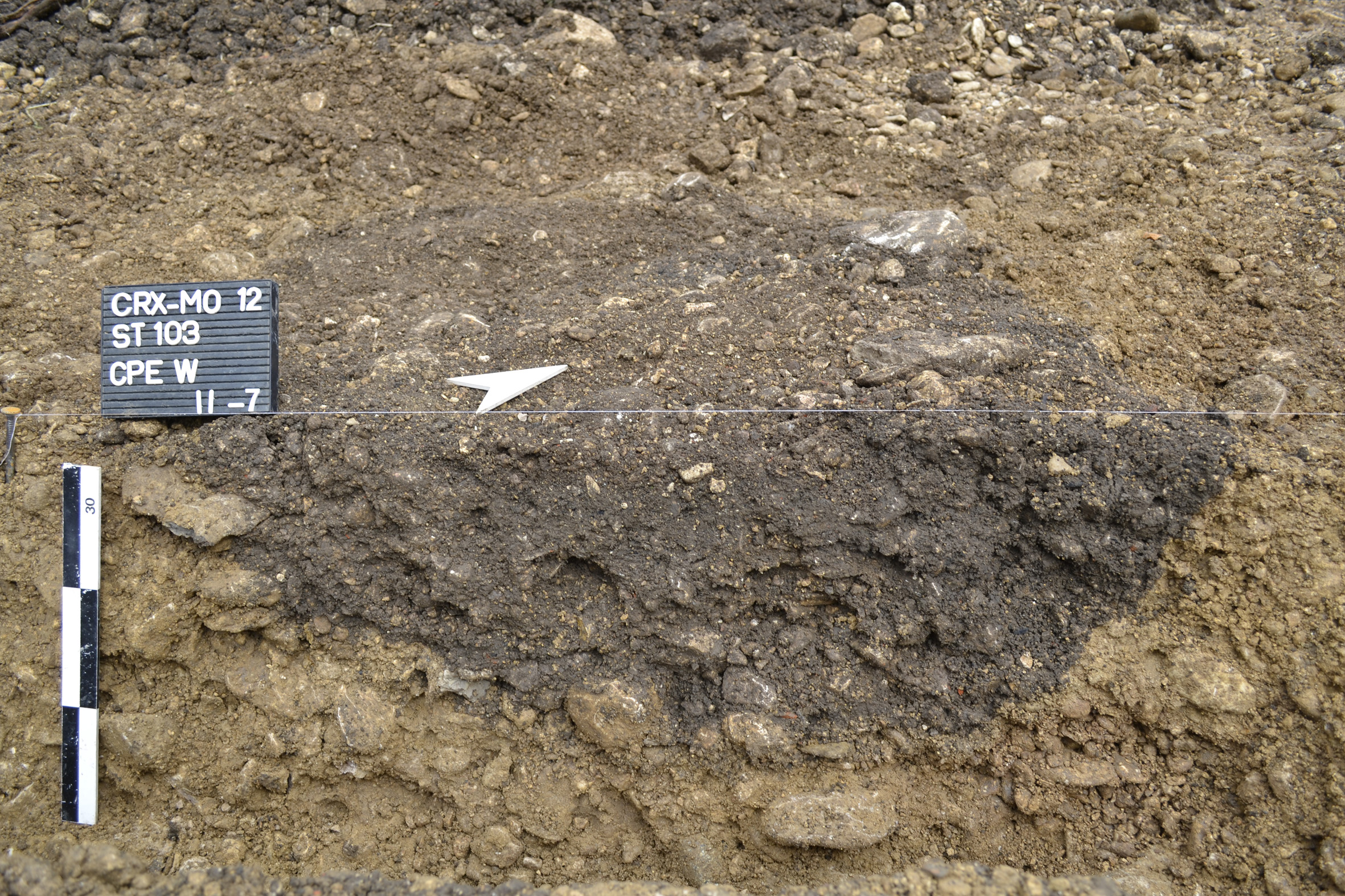 Plus au nord encore, les niveaux romains sont mieux conservés et sont attestés notamment par la présence de fosses-dépotoirs contenant du matériel typique de cette période (1er au 3e s. ap. J.-C.). Parmi ce mobilier figurent notamment une monnaie en bronze, ainsi qu'une petite coupe en céramique sigillée (céramique fine destinée au service de table, plutôt réservée aux familles aisées).