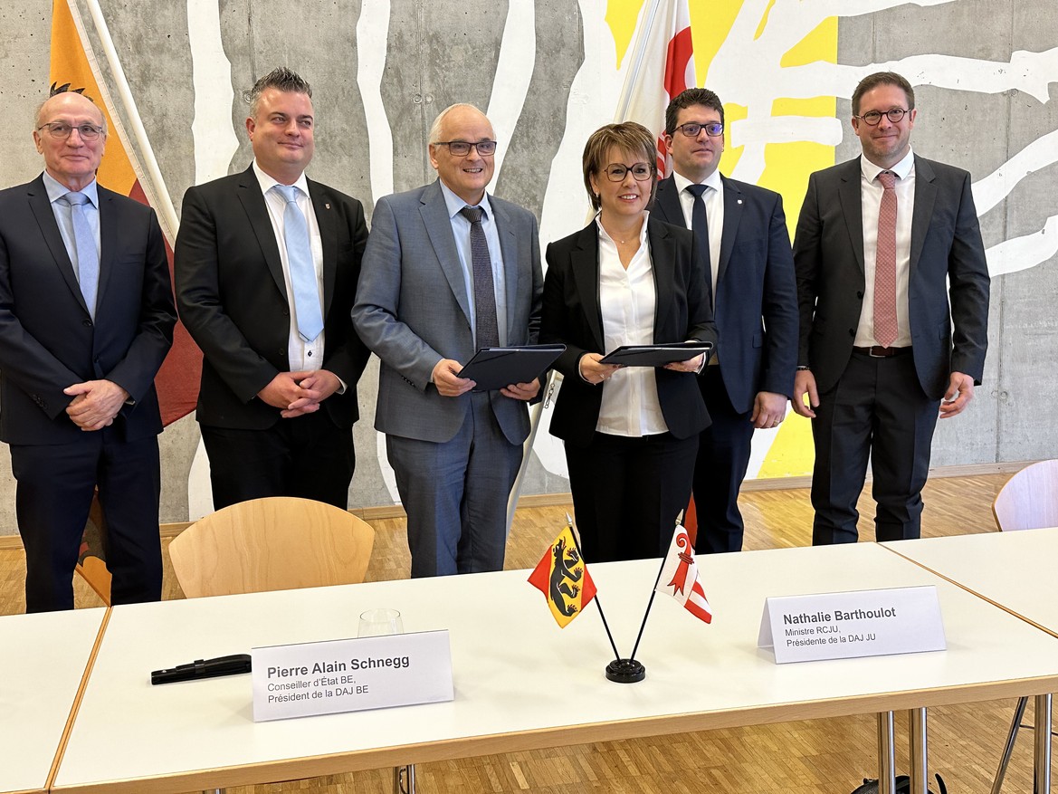 Les gouvernements bernois et jurassien ont signé aujourd’hui à Moutier le Concordat réglant le transfert de la cité prévôtoise. La consultation qui a eu lieu durant l’été a confirmé les solutions positives et équilibrées trouvées dans l’intérêt de la population de Moutier et des deux cantons. Cette signature est une étape importante qui ouvre la voie au processus parlementaire et à la matérialisation du transfert de la ville au 1er janvier 2026.