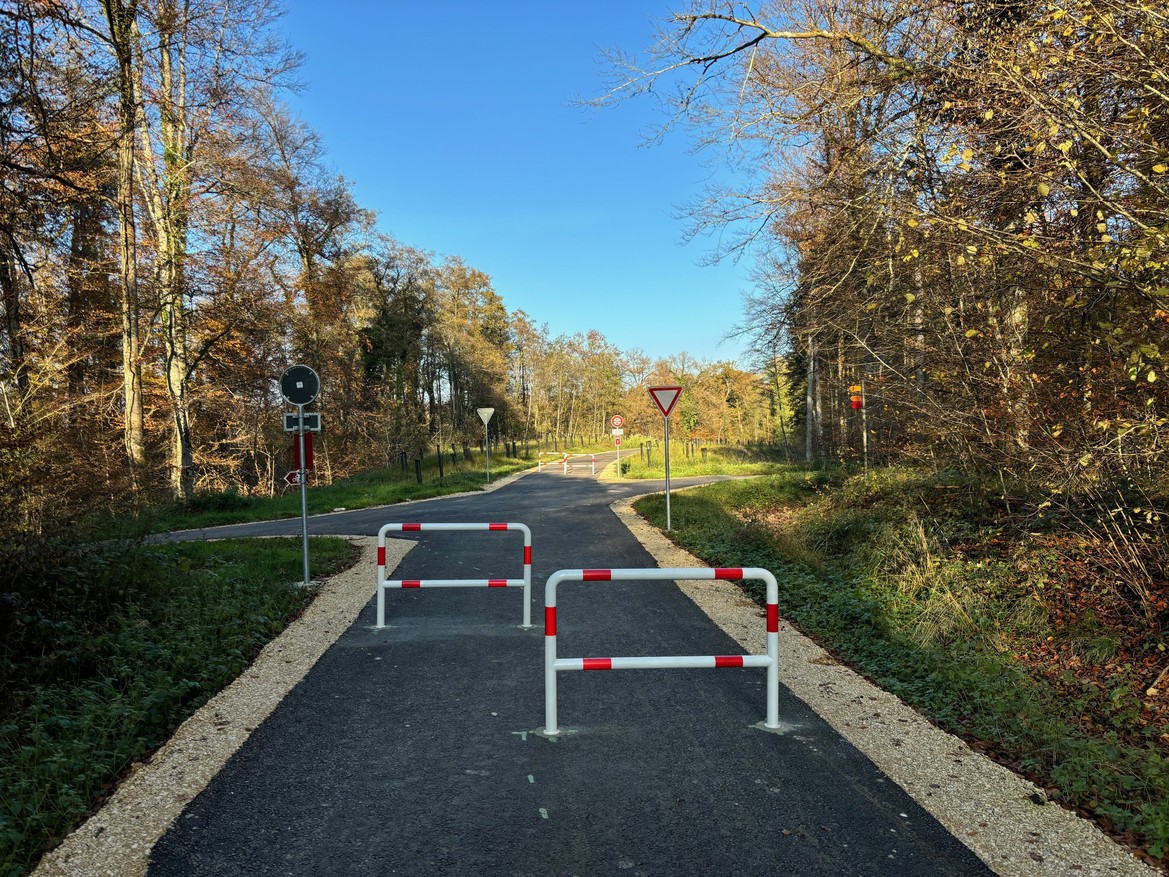 Pour l'heure, les cyclistes arrivant de Bonfol doivent emprunter un chemin forestier réfectionné pour rejoindre le nouvel aménagement réalisé cette année.