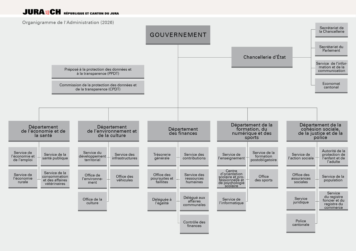 Les membres du nouveau Gouvernement jurassien se sont entendus sur la répartition des départements au terme de rencontres informelles et constructives. Les départements et leur titulaire sont les suivants, selon l’ordre protocolaire (en italique les services qui changent de département):