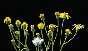 Hauteur de 30 à 100 cm, feuille peu ou pas poilue changeant de forme selon la position sur la plante, multitudes de fleurs jaunes, graines volantes.