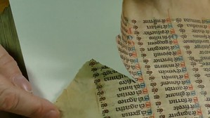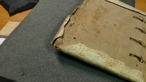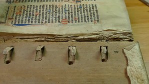 Stabilisation d'une déchirure dans le feuillet d'un manuscrit en parchemin