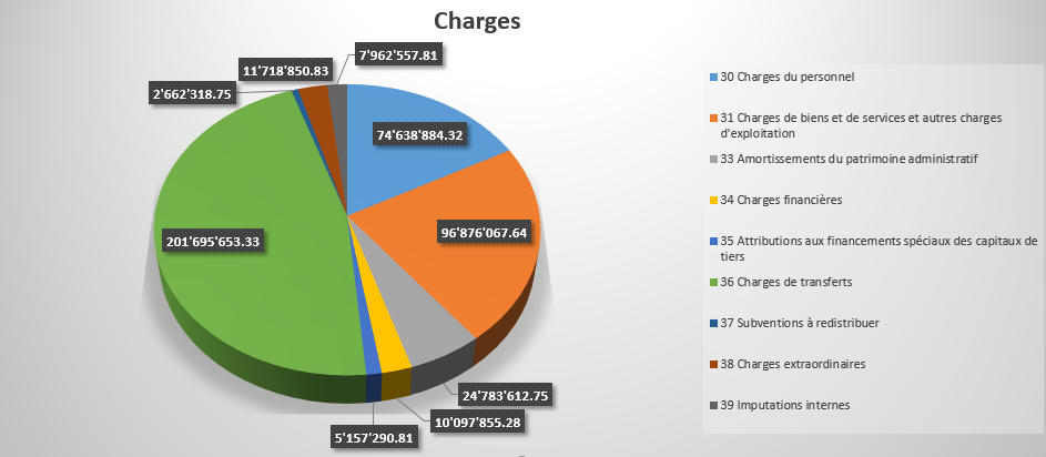 Les charges se montent à 4,81 millions de francs (4,26 millions en 2022). Elles concernent principalement les prestations de services et honoraires et l'entretien du patrimoine administratif.