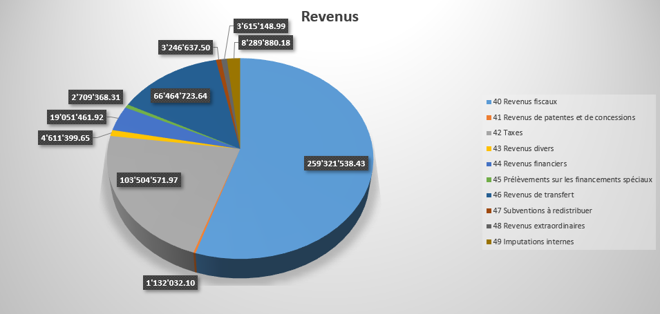 Il est dû principalement à une augmentation des contributions fiscales par rapport à 2023 à hauteur de 19,3 millions de francs (10 millions en provenance des personnes morales, 5,4 millions des personnes physiques et 3,8 millions des autres impôts). Cette progression s'explique en raison d’une dynamique générale portée par une haute conjoncture des années 2022 et 2023 (correctifs d’impôts sur 2024) et par des recettes supplémentaires provenant de certains impôts spéciaux. Ces rentrées fiscales ne se répéteront vraisemblablement pas dans la même ampleur pour les années à venir.