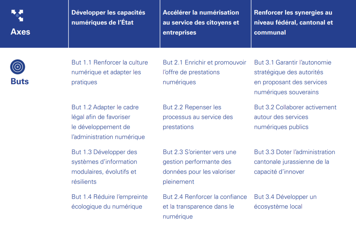 Les 12 buts de la stratégie numérique du canton du Jura Les 12 buts de la stratégie numérique du canton du Jura