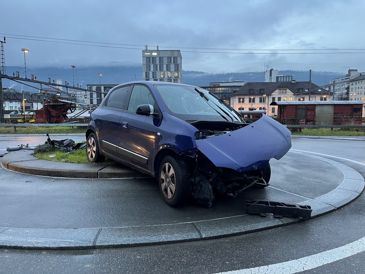 Vendredi 5 décembre 2025, un automobiliste circulait à Delémont sur la RDU, en direction de Courroux. A l'entrée du giratoire avec la rue du Voirnet, le véhicule a percuté la borne avec le signal obstacle à contourner par la droite et le panneau indicateur de direction, avant de finir sa course au centre du Giratoire.