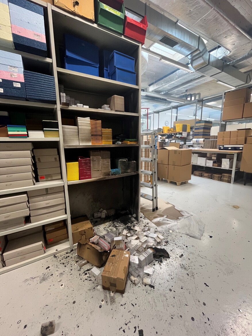 Des piles défectueuses entreposées dans une caisse sur une étagère seraient à l'origine du départ de feu. Grâce à la réactivité du personnel de l'entreprise, le feu était rapidement maîtrisé à l'aide d'un extrincteur et aucun blessé n'était à déplorer.